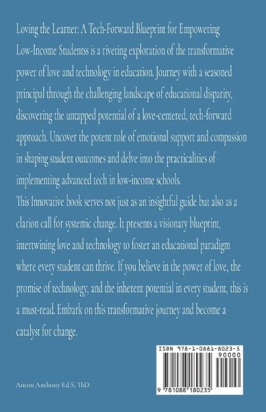 "Loving the Learner: A Tech-Forward Blueprint for Empowering Low-Income Students" is a riveting exploration of the transformative power of love and technology in education. Journey with a seasoned principal through the challenging landscape of educational disparity, discovering the untapped potential of a love-centered, tech-forward approach. Uncover the potent role of emotional support and compassion in shaping student outcomes and delve into the practicalities of implementing advanced tech in low-income schools.This innovative book serves not just as an insightful guide but also as a clarion call for systemic change. It presents a visionary blueprint, intertwining love and technology to foster an educational paradigm where every student can thrive. If you believe in the power of love, the promise of technology, and the inherent potential in every student, this is a must-read. Embark on this transformative journey and become a catalyst for change.
