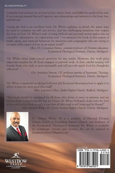 Loving the Soul: How to Love should be read by every clergy and professional caregiver who wants to improve their quality of service to humanity, especially the marginalized. Moreover, it should be read by every child of God who wants to know how to listen, learn, and love souls. If you want to be a more loving person and enhance your relationship with Jesus Christ, this book is for you. Loving the Soul: How to Love is an essential training manual that every pastor should have to "equip the saints for the work of ministry, for building up the body of Christ" (Eph. 4:12, ESV). This book provides a wide variety of ministries that will help your church fulfill the missionary mandates of the gospel.