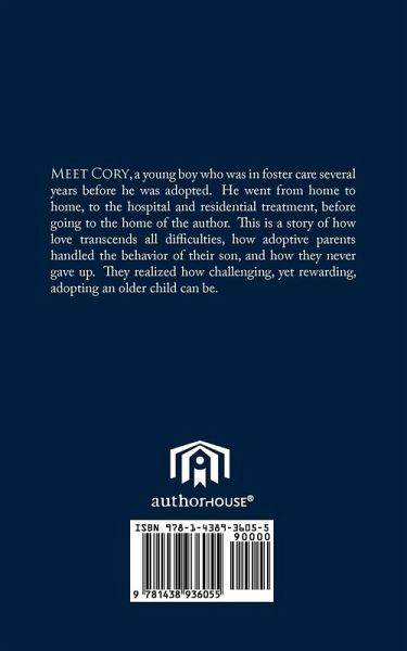 Meet Cory, a young boy who was in foster care several years before he was adopted. He went from home to home, to the hospital and residential treatment, before going to the home of the author. This is a story of how love transcends all difficulties, how adoptive parents handled the behavior of their son, and how they never gave up. They realized how challenging, yet rewarding, adopting an older child can be.