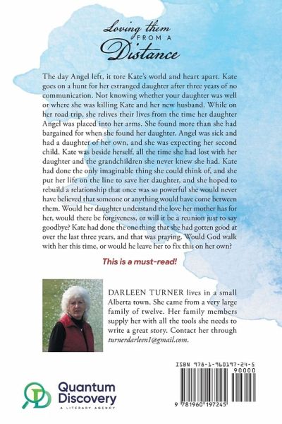 The day Angel left, it tore Kate's world and heart apart. Kate goes on a hunt for her estranged daughter after three years of no communication. Not knowing whether your daughter was well or where she was killing Kate and her new husband. While on her road trip, she relives their lives from the time her daughter Angel was placed into her arms. She found more than she had bargained for when she found her daughter. Angel was sick and had a daughter of her own, and she was expecting her second child. Kate was beside herself, all the time she had lost with her daughter and the grandchildren she never knew she had. Kate had done the only imaginable thing she could think of, and she put her life on the line to save her daughter, and she hoped to rebuild a relationship that once was so powerful she would never have believed that someone or anything would have come between them. Would her daughter understand the love her mother has for her, would there be forgiveness, or will it be a reunion just to say goodbye? Kate had done the one thing that she had gotten good at over the last three years, and that was praying. Would God walk with her this time, or would he leave her to fix this on her own? This is a must-read! DARLEEN TURNER lives in a small Alberta town. She came from a very large family of twelve. Her family members supply her with all the tools she needs to write a great story. Contact her through turnerdarleen1@gmail.com.