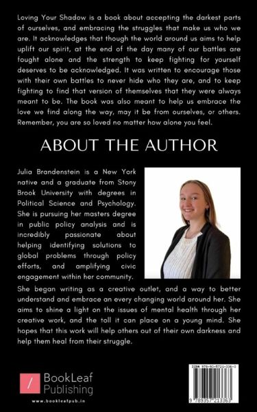 Loving Your Shadow is a book about accepting the darkest parts of ourselves, and embracing the struggles that make us who we are. It acknowledges that though the world around us aims to help uplift our spirit, at the end of the day many of our battles are fought alone and the strength to keep fighting for yourself deserves to be acknowledged. It was written to encourage those with their own battles to never hide who they are, and to keep fighting to find that version of themselves that they were always meant to be. The book was also meant to help us embrace the love we find along the way, may it be from ourselves, or others. Remember, you are so loved no matter how alone you feel.