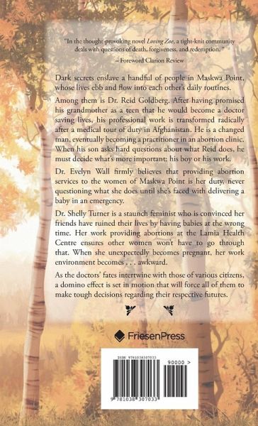 Dark secrets enslave a handful of people in Maskwa Point, whose lives ebb and flow into each other's daily routines. Among them is Dr. Reid Goldberg. After having promised his grandmother as a teen that he would become a doctor saving lives, his professional work is transformed radically after a medical tour of duty in Afghanistan. He is a changed man, eventually becoming a practitioner in an abortion clinic. When his son asks hard questions about what Reid does, he must decide what's more important: his boy or his work. Dr. Evelyn Wall firmly believes that providing abortion services to the women of Maskwa Point is her duty, never questioning what she does until she's faced with delivering a baby in an emergency. Dr. Shelly Turner is a staunch feminist who is convinced her friends have ruined their lives by having babies at the wrong time. Her work providing abortions at the Lamia Health Centre ensures other women won't have to go through that. When she unexpectedly becomes pregnant, her work environment becomes . . . awkward. As the doctors' fates intertwine with those of various citizens, a domino effect is set in motion that will force all of them to make tough decisions regarding their respective futures.