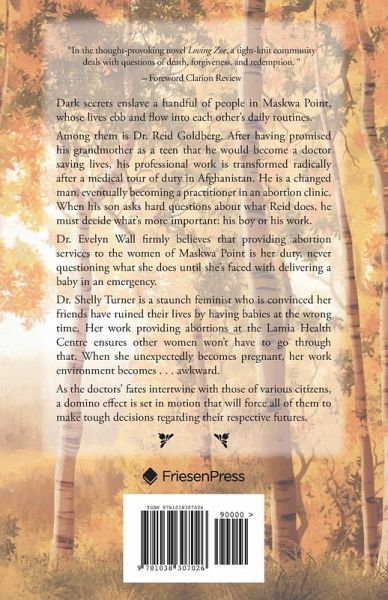 Dark secrets enslave a handful of people in Maskwa Point, whose lives ebb and flow into each other's daily routines. Among them is Dr. Reid Goldberg. After having promised his grandmother as a teen that he would become a doctor saving lives, his professional work is transformed radically after a medical tour of duty in Afghanistan. He is a changed man, eventually becoming a practitioner in an abortion clinic. When his son asks hard questions about what Reid does, he must decide what's more important: his boy or his work. Dr. Evelyn Wall firmly believes that providing abortion services to the women of Maskwa Point is her duty, never questioning what she does until she's faced with delivering a baby in an emergency. Dr. Shelly Turner is a staunch feminist who is convinced her friends have ruined their lives by having babies at the wrong time. Her work providing abortions at the Lamia Health Centre ensures other women won't have to go through that. When she unexpectedly becomes pregnant, her work environment becomes . . . awkward. As the doctors' fates intertwine with those of various citizens, a domino effect is set in motion that will force all of them to make tough decisions regarding their respective futures.