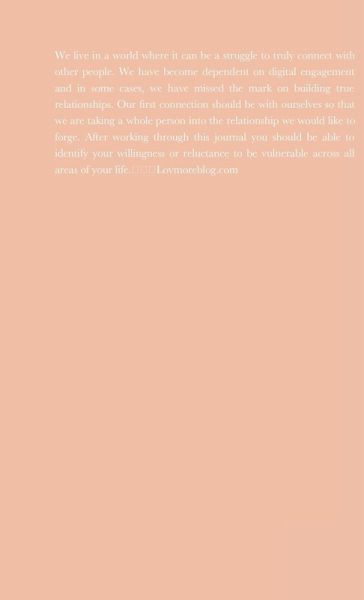 Learn more about yourself and how you love others- one page at a time. Take a 50-page journey to become a more connected you. Through prompts that encourage vulnerable reflection build a deeper connection with every person in your life. This journal will help you get to the core of how you build relationships with family, friends, co-workers, romantic relationships, and yourself.