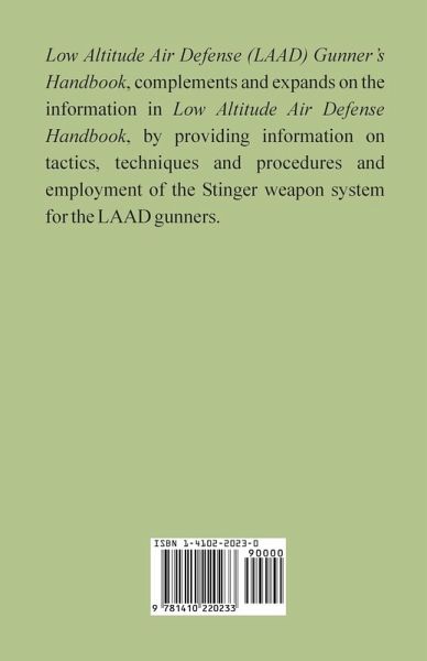 Low Altitude Air Defense (LAAD) Gunner's Handbook, complements and expands on the information in Low Altitude Air Defense Handbook, by providing information on tactics, techniques and procedures and employment of the Stinger weapon system for the LAAD gunners.