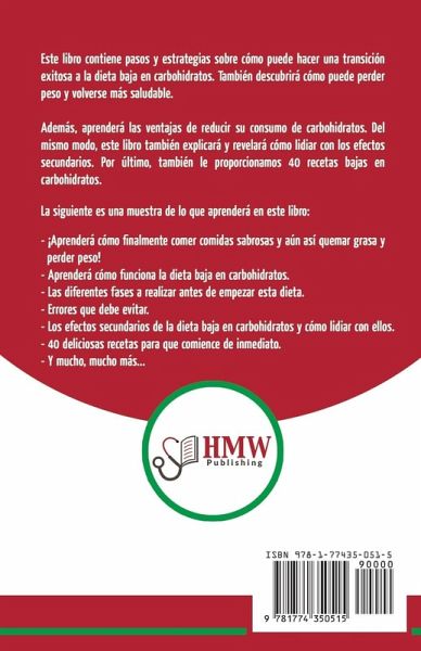 Este libro contiene pasos y estrategias sobre cómo puede hacer una transición exitosa a la dieta baja en carbohidratos. También descubrirá cómo puede perder peso y volverse más saludable. Además, aprenderá las ventajas de reducir su consumo de carbohidratos. Del mismo modo, este libro también explicará y revelará cómo lidiar con los efectos secundarios. Por último, también le proporcionamos 40 recetas bajas en carbohidratos. La siguiente es una muestra de lo que aprenderá en este libro: - ¡Aprenderá cómo finalmente comer comidas sabrosas y aún así quemar grasa y perder peso! - Aprenderá cómo funciona la dieta baja en carbohidratos. - Las diferentes fases a realizar antes de empezar esta dieta. - Errores que debe evitar. - Los efectos secundarios de la dieta baja en carbohidratos y cómo lidiar con ellos. - 40 deliciosas recetas para que comience de inmediato. - Y mucho, mucho más...