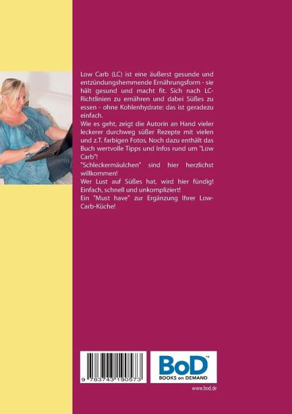 Low Carb (LC) ist eine äußerst gesunde und entzündungshemmende Ernährungsform - sie hält gesund und macht fit. Sich nach LC-Richtlinien zu ernähren und dabei Süßes zu essen - ohne Kohlenhydrate: das ist geradezu einfach. Wie es geht, zeigt die Autorin an Hand vieler leckerer durchweg süßer Rezepte mit vielen und z.T. farbigen Fotos. Noch dazu enthält das Buch wertvolle Tipps und Infos rund um "Low Carb"! "Schleckermäulchen" sind hier herzlichst willkommen! Wer Lust auf Süßes hat, wird hier fündig! Einfach, schnell und unkompliziert!Ein "Must have" zur Ergänzung Ihrer Low-Carb-Küche!