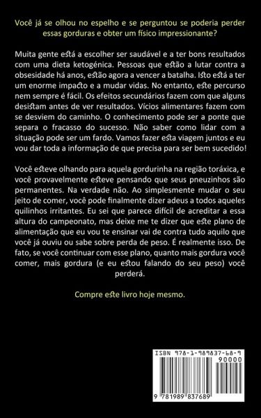 Você já se olhou no espelho e se perguntou se poderia perder essas gorduras e obter um físico impressionante? Muita gente está a escolher ser saudável e a ter bons resultados com uma dieta ketogénica. Pessoas que estão a lutar contra a obsesidade há anos, estão agora a vencer a batalha. Isto está a ter um enorme impacto e a mudar vidas. No entanto, este percurso nem sempre é fácil. Os efeitos secundários fazem com que alguns desistam antes de ver resultados. Vícios alimentares fazem com se desviem do caminho. O conhecimento pode ser a ponte que separa o fracasso do sucesso. Não saber como lidar com a situação pode ser um fardo. Vamos fazer esta viagem juntos e eu vou dar toda a informação de que precisa para ser bem sucedido! Você esteve olhando para aquela gordurinha na região toráxica, e você provavelmente esteve pensando que seus pneuzinhos são permanentes. Na verdade não. Ao simplesmente mudar o seu jeito de comer, você pode finalmente dizer adeus a todos aqueles quilinhos irritantes. Eu sei que parece difícil de acreditar a essa altura do campeonato, mas deixe me te dizer que este plano de alimentação que eu vou te ensinar vai de contra tudo aquilo que você já ouviu ou sabe sobre perda de peso. É realmente isso. De fato, se você continuar com esse plano, quanto mais gordura você comer, mais gordura (e eu estou falando do seu peso) você perderá. Compre este livro hoje mesmo.