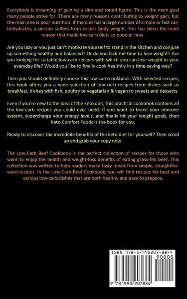 Everybody is dreaming of gaining a slim and toned figure. This is the main goal many people strive for. There are many reasons contributing to weight gain, but the main one is poor nutrition. If the diet has a large number of simple or fast carbohydrates, a person suffers from excess body weight. This has been the main reason that made low carb diets so popular now. Are you lazy or you just can't motivate yourself to stand in the kitchen and conjure up something healthy and balanced? Or do you lack the time to lose weight? Are you looking for suitable low-carb recipes with which you can lose weight in your everyday life? Would you like to finally cook healthily in a time-saving way? Then you should definitely choose this low-carb cookbook. With selected recipes, this book offers you a wide selection of low-carb recipes from dishes such as breakfast, dishes with fish, poultry or vegetarian & vegan to sweets and desserts. Even if you're new to the idea of the keto diet, this practical cookbook contains all the low-carb recipes you could ever need. If you want to boost your immune system, supercharge your energy levels, and finally hit your weight goals, then Keto Comfort Foods is the book for you. Ready to discover the incredible benefits of the keto diet for yourself? Then scroll up and grab your copy now. The Low-Carb Beef Cookbook is the perfect collection of recipes for those who want to enjoy the health and weight-loss benefits of eating grass-fed beef. This collection was written to help readers make tasty meals from simple, straightforward recipes. In the Low-Carb Beef Cookbook, you will find recipes for beef and various low-carb dishes that are both healthy and easy to prepare.