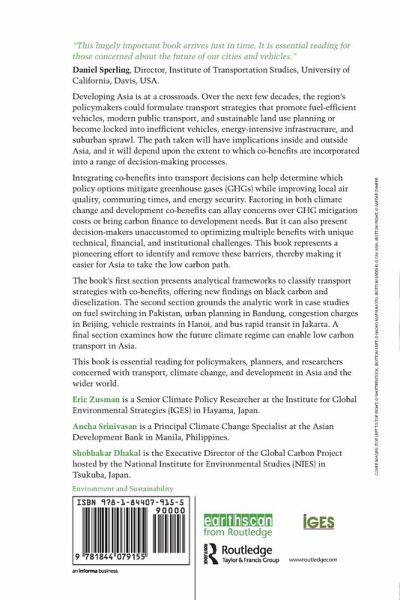 Without the effective participation of developing Asia, a climate crisis is certain. Within developing Asia, the key to averting such a crisis lies in low carbon transport. China, India and Asia's other emerging economies could promote fuel efficient vehicles, public transport, and sustainable urban planning. Or they could become locked into inefficient vehicles, energy intensive infrastructure, and suburban sprawl. The path they choose will have long-term implications for the entire world. And it will depend upon the extent to which they adopt a co-benefit approach. A co-benefit approach involves recognizing that some transport policies mitigate greenhouse gases while simultaneously improving urban air quality, commuting times and energy security. Accounting for these additional benefits can overcome a reluctance to bear the costs of climate actions. But it also presents unique technical, financial, and institutional challenges to decision-makers unaccustomed to optimizing multiple benefits. The book represents a pioneering effort to identify and remove barriers to a co-benefit approach in developing Asia's transport sector. The introductory section makes the case for co-benefits in developing Asia's transport sector. The second section features analytical frameworks to identify strategies with potential co-benefits, offering new findings on black carbon and dieselization. The third section grounds the analytic work in case studies on fuel switching in Pakistan, urban planning in Bandung, Indonesia, congestion charges in Beijing, vehicle restraints in Hanoi and bus rapid transit in Jakarta. A final section examines whether a post-2012 climate regime can help transform a rapidly motorizing Asia into a low carbon Asia. This book is essential reading for transport policy makers, planners, and researchers concerned with low carbon transport, climate change and development in Asia and the wider world.