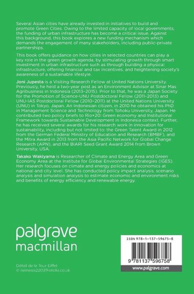Several Asian cities have already invested in initiatives to build and promote Green Cities. Owing to the limited capacity of local governments, the funding of urban infrastructure has become a critical issue. Against this background, this book explores a new funding mechanism which demands the engagement of many stakeholders, including public-private partnerships. This book offers guidance on how cities in selected countries can play a key role in the green growth agenda, by stimulating growth through smart investment in urban infrastructure such as through building a physical infrastructure, offering financial and tax incentives, and heightening society's awareness of a sustainable lifestyle.