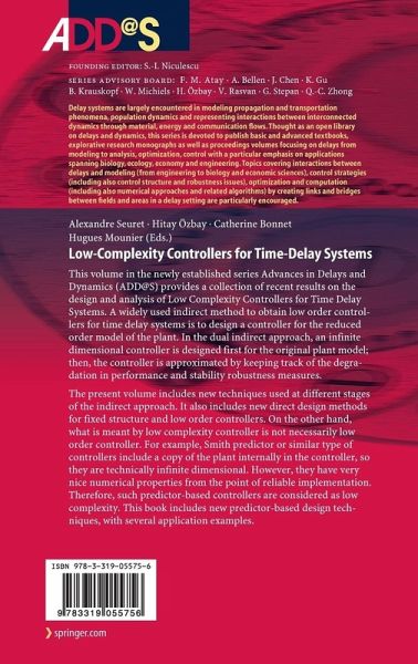 This volume in the newly established series Advances in Delays and Dynamics (ADD@S) provides a collection of recent results on the design and analysis of Low Complexity Controllers for Time Delay Systems. A widely used indirect method to obtain low order controllers for time delay systems is to design a controller for the reduced order model of the plant. In the dual indirect approach, an infinite dimensional controller is designed first for the original plant model; then, the controller is approximated by keeping track of the degradation in performance and stability robustness measures.