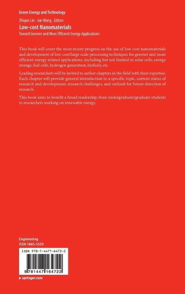 This book will cover the most recent progress on the use of low-cost nanomaterials and development of low-cost/large scale processing techniques for greener and more efficient energy related applications, including but not limited to solar cells, energy storage, fuel cells, hydrogen generation, biofuels, etc.