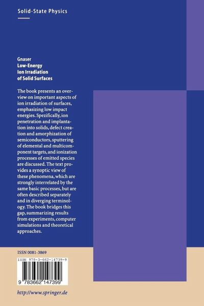 The book presents an overview on important aspects of ion irradiation of surfaces, emphasizing low impact energies. Specifically, ion penetration and implantation into solids, defect creation and amorphization of semiconductors, sputtering of elemental and multicomponent targets, and ionization processes of emitted species are discussed. It provides a synoptic view of these phenomena which are strongly interrelated by the same basic processes, but are often described separately and in diverging terminology. The book tries to bridge this gap, summarizing results from experiments, computer simulations and theoretical approaches.