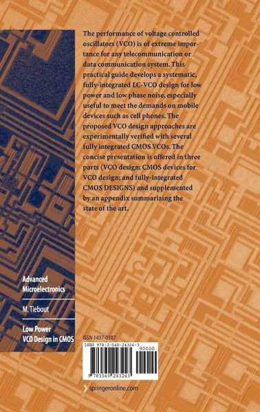 This work covers the design of CMOS fully integrated low power low phase noise voltage controlled oscillators for telecommunication or datacommuni- tion systems. The need for low power is obvious, as mobile wireless telecommunications are battery operated. As wireless telecommunication systems use oscillators in frequency synthesizers for frequency translation, the selectivity and signal to noise ratio of receivers and transmitters depend heavily on the low phase noise performance of the implemented oscillators. Datacommunication s- tems need low jitter, the time-domain equivalent of low phase noise, clocks for data detection and recovery. The power consumption is less critical. The need for multi-band and multi-mode systems pushes the high-integration of telecommunication systems. This is o?ered by sub-micron CMOS feat- ing digital ?exibility. The recent crisis in telecommunication clearly shows that mobile hand-sets became mass-market high-volume consumer products, where low-cost is of prime importance. This need for low-cost products - livens tremendously research towards CMOS alternatives for the bipolar or BiCMOS solutions in use today.