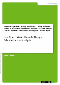 Project Report from the year 2016 in the subject Engineering - Civil Engineering, grade: AA, Priyadarshini College of Engineering, Nagpur, course: B.E AERONAUTICAL ENGINEERING, language: English, abstract: This text depicts how a low speed water tunnel was designed and fabricated, as well as tested and analysed.The low speed recirculating type water tunnel was successfully designed and fabricated. The designing was done by taking into consideration of the Reynolds no. flow velocity, boundary layer formation, cavitation number and Froude's number.Theoretical and computational studies were made to decide the shape and the size of the various components of the low speed water tunnel. Uniformity in the setup of main objective and was successfully achieved.The setup consists of an inlet plenum with baffle to reduce turbulence or splashing, honeycomb structure, converging section, test section and wide angle diffuser and outlet module suitable low power single phase motor was selected for continuous flow of water in the setup. The water was recirculated using this motor and appropriate plumbing system.All the components were designed, analyzed, constructed and installed successfully .General purpose polymer was used as a ground material for the fabrication purpose. Necessary up gradations were made during various stages of the project. Flow visualization over the test bodies was successfully visualized using a dye injection system.