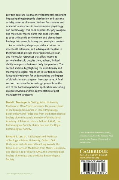 Low temperature is a major environmental constraint impacting the geographic distribution and seasonal activity patterns of insects. Written for academic researchers in environmental physiology and entomology, this book explores the physiological and molecular mechanisms that enable insects to cope with a cold environment and places these findings into an evolutionary and ecological context. An introductory chapter provides a primer on insect cold tolerance and subsequent chapters in the first section discuss the organismal, cellular and molecular responses that allow insects to survive in the cold despite their, at best, limited ability to regulate their own body temperature. The second section, highlighting the evolutionary and macrophysiological responses to low temperature, is especially relevant for understanding the impact of global climate change on insect systems. A final section translates the knowledge gained from the rest of the book into practical applications including cryopreservation and the augmentation of pest management strategies.