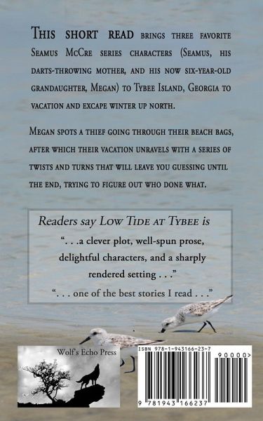 Twists and turns that leave you guessing until the end. In "Low Tide at Tybee," James M. Jackson brings three of his Seamus McCree series characters (Seamus, his darts-throwing mother, and his now six-year-old granddaughter, Megan) to Tybee Island, Georgia to vacation and escape winter up north. Megan spots a thief going through their beach bags, after which their vacation unravels with a series of twists and turns that will leave you guessing until the end, trying to figure out who done what.