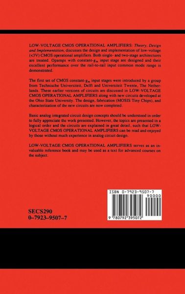 Basic analog integrated circuit design concepts should be understood in order to fully appreciate the work presented. However, the topics are presented in a logical order and the circuits are explained in great detail, so that Low-Voltage CMOS Operational Amplifiers can be read and enjoyed by those without much experience in analog circuit design.