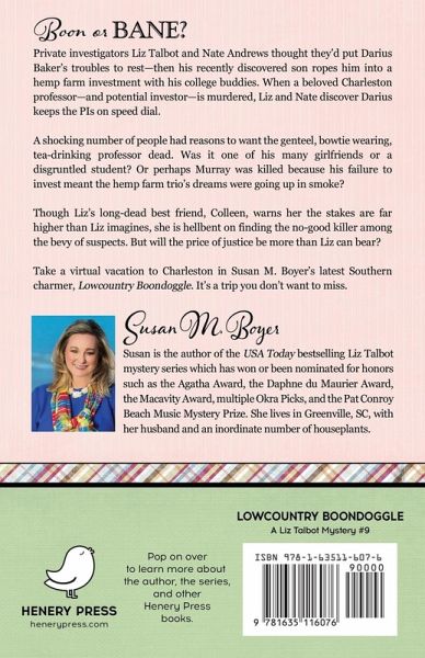 Private investigators Liz Talbot and Nate Andrews thought they'd put Darius Baker's troubles to rest-then his recently discovered son ropes him into a hemp farm investment with his college buddies. When a beloved Charleston professor-and potential investor-is murdered, Liz and Nate discover Darius keeps the PIs on speed dial. A shocking number of people had reasons to want the genteel, bowtie wearing, tea-drinking professor dead. Was it one of his many girlfriends or a disgruntled student? Or perhaps Murray was killed because his failure to invest meant the hemp farm trio's dreams were going up in smoke? Though Liz's long-dead best friend, Colleen, warns her the stakes are far higher than Liz imagines, she is hellbent on finding the no-good killer among the bevy of suspects. But will the price of justice be more than Liz can bear?