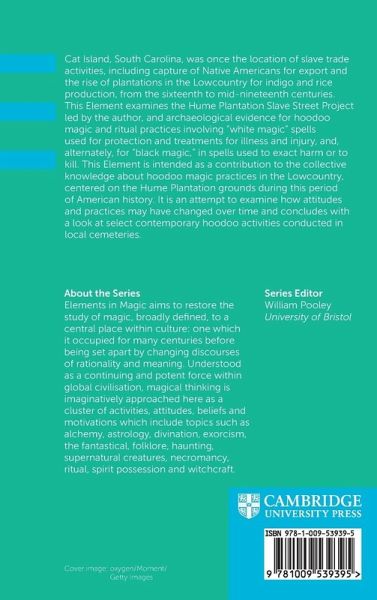 Cat Island, South Carolina, was once the location of slave trade activities, including capture of Native Americans for export and the rise of plantations in the Lowcountry for indigo and rice production, from the sixteenth to mid-nineteenth centuries. This Element examines the Hume Plantation Slave Street Project led by the author, and archaeological evidence for hoodoo magic and ritual practices involving "white magic" spells used for protection and treatments for illness and injury, and, alternately, for 'black magic,' in spells used to exact harm or to kill. This Element is intended as a contribution to the collective knowledge about hoodoo magic practices in the Lowcountry, centered on the Hume Plantation grounds during this period of American history. It is an attempt to examine how attitudes and practices may have changed over time and concludes with a look at select contemporary hoodoo activities conducted in local cemeteries.