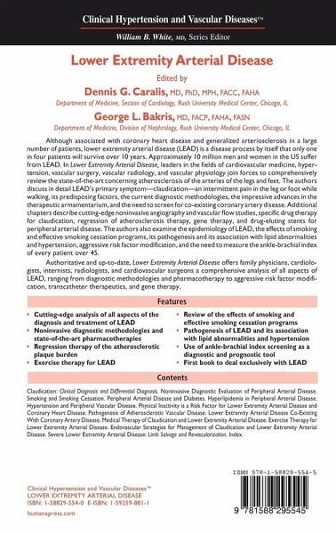 Authoritative and up-to-date, Lower Extremity Arterial Disease offers family physicians, cardiologists, internists, radiologists, and cardiovascular surgeons a comprehensive analysis of all aspects of LEAD, ranging from diagnostic methodologies and pharmacotherapy to aggressive risk factor modification, transcatheter therapeutics, and gene therapy.