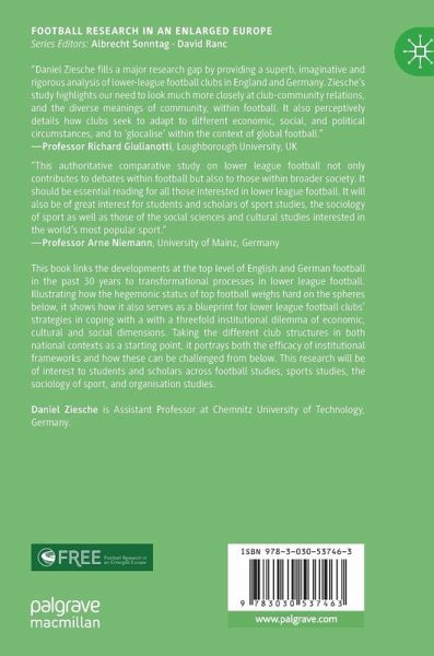 The study links the developments at the top level of English and German football in the past 30 years to transformational processes in lower league football. Illustrating how the hegemonic status of top football weighs hard on the spheres below, it depicts how it also serves as a blueprint for lower league football clubs' strategies in coping with a threefold dilemma of institutional legitimacy that shows itself in economic, cultural and social dimensions. Taking the different club structures in both national contexts as a starting point, it portrays both the efficacy of institutional frameworks and how these can be challenged from below. This research will be of interest to students and scholars across football studies, sports studies, the sociology of sport, and organisation studies.