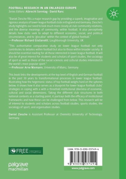 The study links the developments at the top level of English and German football in the past 30 years to transformational processes in lower league football. Illustrating how the hegemonic status of top football weighs hard on the spheres below, it depicts how it also serves as a blueprint for lower league football clubs' strategies in coping with a threefold dilemma of institutional legitimacy that shows itself in economic, cultural and social dimensions. Taking the different club structures in both national contexts as a starting point, it portrays both the efficacy of institutional frameworks and how these can be challenged from below. This research will be of interest to students and scholars across football studies, sports studies, the sociology of sport, and organisation studies.