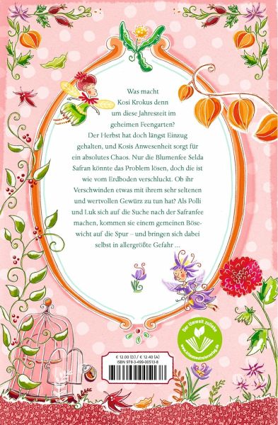 Was macht Kosi Krokus denn um diese Jahreszeit im geheimen Feengarten? Der Herbst hat doch längst Einzug gehalten, und Kosis Anwesenheit sorgt für ein absolutes Chaos. Alle Blumenfeen sind außer Rand und Band, und wie sollen Polli und Luk bloß all die blühenden Frühlingsblumen im Schulgarten erklären? Nur die Blumenfee Selda Safran könnte das Problem lösen - doch die kleine Safranfee ist wie vom Erdboden verschluckt. Ob ihr Verschwinden etwas mit ihrem sehr seltenen und wertvollen Gewürz zu tun hat? Als Polli und Luk sich auf die Suche nach Selda machen, kommen sie einem gemeinen Bösewicht auf die Spur - doch wie können sie Selda aus seinen Fängen befreien? Lowinda bietet all ihre magischen Kräfte auf, und Polli und Luk stürzen sich in das größte und gefährlichste Abenteuer ihres Lebens ...