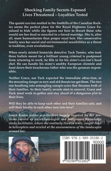 Shocking Family Secrets Exposed Lives Threatened - Loyalties Tested The quaint eco-inn nestled in the foothills of the Canadian Rockies seems the perfect place for Her Royal Highness Grace Furulund to hide while she figures out how to thwart those who would see her dead or muzzled in a forced marriage. She is, after all, more humanitarian than proper royal heir. Her conservative family sees her social and environmental sensibilities as a threat to tradition, even revolutionary. When newly minted homicide detective Tuck Tanner, who took three bullets meant for a brilliant young criminal is postponed from returning to work, he fills in for his sister's eco-inn's head chef. He can handle his sister's snobby European clientele and hunt down their treacherous father who was the gunman responsible. Neither Grace, nor Tuck expected the immediate attrac-tion, or the mounting danger as new and old threats tar-get them. The two run headlong into untangling conspir-acies that threaten both of their families. As their family secrets start to unravel, Grace and Tuck must work to-gether and stay ahead of a dangerous plot to their lives. Will they be able to keep each other and their families safe, and will their loyalty to each other turn into love?