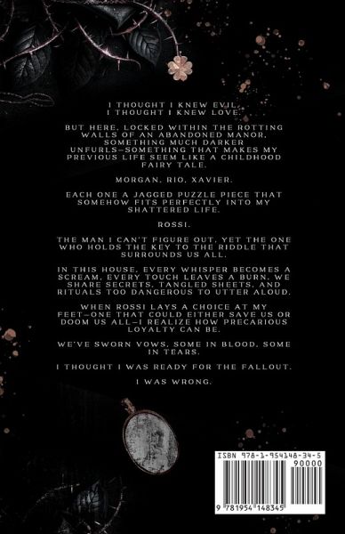 I thought I knew evil. I thought I knew love. But here, locked within the rotting walls of an abandoned manor, something much darker unfurls-something that makes my previous life seem like a childhood fairy tale. Morgan, Rio, Xavier. Each one a jagged puzzle piece that somehow fits perfectly into my shattered life. Rossi. The man I can't figure out, yet the one who holds the key to the riddle that surrounds us all. In this house, every whisper becomes a scream, every touch leaves a burn. We share secrets, tangled sheets, and rituals too dangerous to utter aloud. When Rossi lays a choice at my feet-one that could either save us or doom us all-I realize how precarious loyalty can be. We've sworn vows, some in blood, some in tears. I thought I was ready for the fallout. I was wrong. -- This is Book 2 of a duet. It is highly recommended you indulge in Book 1, Broken Beauty, first.