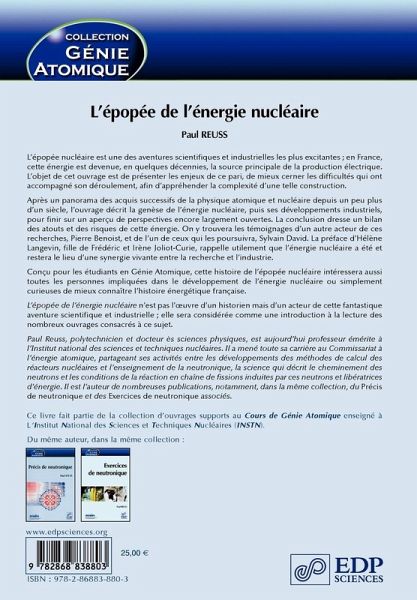Paul Reuss a mené toute sa carrière au CEA (Commissariat à l'énergie atomique). Polytechnicien et docteur ès sciences physiques, il a consacré une grande partie de ses recherches à la conception et au calcul des coeurs des centrales nucléaires ; il est l'auteur de plus de 100 publications techniques et pédagogiques, dont le « Traité de neutronique », ouvrage de référence en la matière. Expert internationalement reconnu, Paul Reuss se consacre désormais à l'enseignement. (au moment de la parution de l'ouvrage)