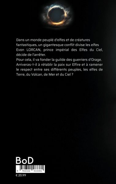 Dans un monde peuplé d'elfes et de créatures fantastiques, un gigantesque conflit divise les elfes Evon LORCAN, prince impérial des Elfes du Ciel, décide de l'arrêter. Pour cela, il va fonder la guilde des guerriers d'Orage. Arriveras-t-il à rétablir la paix sur Elfire et à ramener le respect entre ses différents peuples, les elfes de Terre, du Volcan, de Mer et du Ciel ?