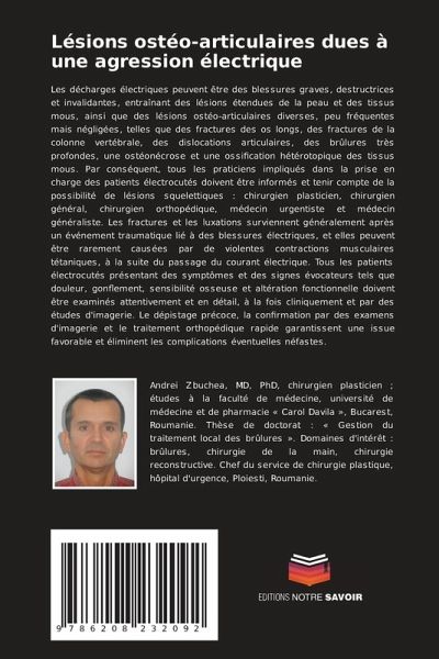 Les décharges électriques peuvent être des blessures graves, destructrices et invalidantes, entraînant des lésions étendues de la peau et des tissus mous, ainsi que des lésions ostéo-articulaires diverses, peu fréquentes mais négligées, telles que des fractures des os longs, des fractures de la colonne vertébrale, des dislocations articulaires, des brûlures très profondes, une ostéonécrose et une ossification hétérotopique des tissus mous. Par conséquent, tous les praticiens impliqués dans la prise en charge des patients électrocutés doivent être informés et tenir compte de la possibilité de lésions squelettiques : chirurgien plasticien, chirurgien général, chirurgien orthopédique, médecin urgentiste et médecin généraliste. Les fractures et les luxations surviennent généralement après un événement traumatique lié à des blessures électriques, et elles peuvent être rarement causées par de violentes contractions musculaires tétaniques, à la suite du passage du courant électrique. Tous les patients électrocutés présentant des symptômes et des signes évocateurs tels que douleur, gonflement, sensibilité osseuse et altération fonctionnelle doivent être examinés attentivement et en détail, à la fois cliniquement et par des études d'imagerie. Le dépistage précoce, la confirmation par des examens d'imagerie et le traitement orthopédique rapide garantissent une issue favorable et éliminent les complications éventuelles néfastes.