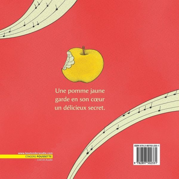 Une pomme jaune garde en son coeur un secret étoilé. Au milieu de centaines de pommes rouges, une pomme un peu différente se laisse bercer par un rayon de lune. Une berceuse révèle enfin le secret derrière l'étoile mystérieuse cachée au coeur de chaque pomme. Le retour scintillant du classique jeunesse de Marie-France Comeau et Gilles Cormier dans une nouvelle présentation tout aussi croquante!