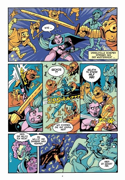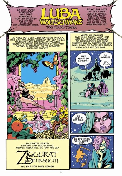 Endlose Weiten aus Sand, unterbrochen von unter der Hitze langsam zerbröckelnden Felsen ... das ist die lubische Wüste.Durch diese tödliche Ödnis marschieren Luba und Gelata, einem Trupp Soldaten des dritten Bataillons der verhassten Armee von Avara auf der Spur. Flirrende Hitze am Tag und ein sternenbehangener Himmel in der Nacht lassen die Realität immer unwirklicher erscheinen. Doch es gibt hier einen Ort, der Erholung und mehr verheisst: Der Ziggurat der Sehnsucht empfängt müde Wanderer ...
