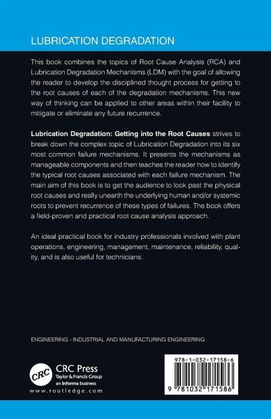 1. Lubrication Basics. 2. PROACT® Root Cause Analysis Basics. 3. The Application of Root Cause Analysis (RCA) to Lubrication Degradation Related Failures. 4. Building of a Tree for the LDM: Oxidation. 5. Building of a Tree for the LDM: Thermal Degradation. 6. Building of a Tree for the LDM: Microdieseling. 7. Building of a Tree for the LDM: Electrostatic Spark Discharge. 8. Building of a Tree for the LDM: Additive Depletion. 9. Building of a Tree for the LDM: Contamination. 10. Bringing it all Together: Fan Motor Failure RCA.