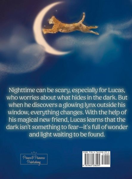 Nighttime can be scary, especially for Lucas, who worries about what hides in the dark. But when he discovers a glowing lynx outside his window, everything changes. With the help of his magical new friend, Lucas learns that the dark isn't something to fear-it's full of wonder and light waiting to be found. A captivating bedtime story about courage, friendship, and finding comfort in the unknown, Lucas and the Light Lynx is perfect for children who need a little extra magic to face their fears and dream big under the stars. Perfect for: Parents and caregivers seeking heartwarming stories to share with their children. Children ages 3-8 who might be scared of the dark. Teachers and librarians looking for engaging read-alouds to promote imagination. Join Lucas as he conquers his fear and meets a new friend along the way.