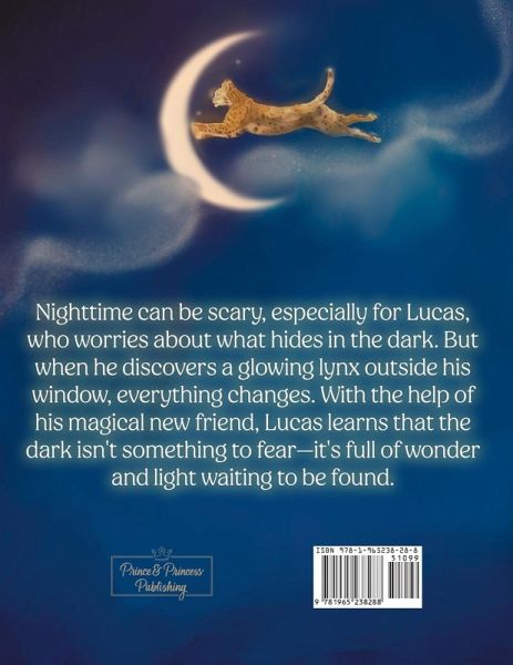 Nighttime can be scary, especially for Lucas, who worries about what hides in the dark. But when he discovers a glowing lynx outside his window, everything changes. With the help of his magical new friend, Lucas learns that the dark isn't something to fear-it's full of wonder and light waiting to be found. A captivating bedtime story about courage, friendship, and finding comfort in the unknown, Lucas and the Light Lynx is perfect for children who need a little extra magic to face their fears and dream big under the stars. Perfect for: Parents and caregivers seeking heartwarming stories to share with their children. Children ages 3-8 who might be scared of the dark. Teachers and librarians looking for engaging read-alouds to promote imagination. Join Lucas as he conquers his fear and meets a new friend along the way.