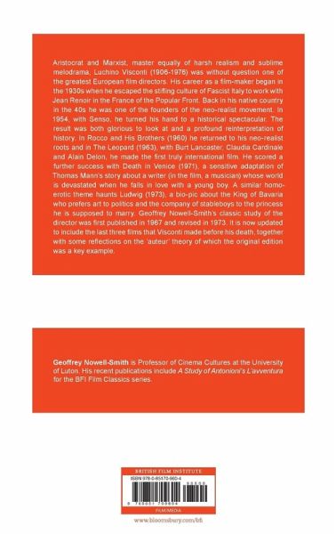 Aristocrat and Marxist, master equally of harsh realism and sublime melodrama, Luchino Visconti (1906-1976) was without question one of the greatest European film directors. His career as a film-maker began in the 1930s when he escaped the stifling culture of Fascist Italy to work with Jean Renoir in the France of the Popular Front. Back in his native country in the 40s he was one of the founders of the neo-realist movement. In 1954, with Senso, he turned his hand to a historical spectacular. The result was both glorious to look at and a profound reinterpretation of history. In Rocco and His Brothers (1960) he returned to his neo-realist roots and in The Leopard (1963), with Burt Lancaster, Claudia Cardinale and Alain Delon, he made the first truly international film. He scored a further success with Death in Venice (1971), a sensitive adaptation of Thomas Mann's story about a writer (in the film, a musician) whose world is devastated when he falls in love with a young boy. A similar homo-erotic theme haunts Ludwig (1973), a bio-pic about the King of Bavaria who prefers art to politics and the company of stableboys to the princess he is supposed to marry. Geoffrey Nowell-Smith's classic study of the director was first published in 1967 and revised in 1973. It is now updated to include the last three films that Visconti made before his death, together with some reflections on the 'auteur' theory of which the original edition was a key example.