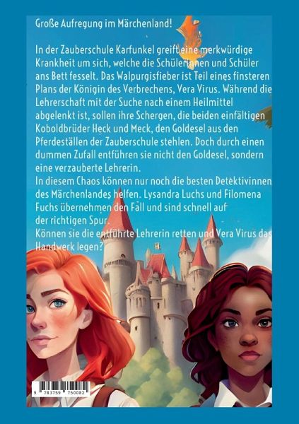 Große Aufregung im Märchenland! In der Zauberschule Karfunkel greift eine merkwürdige Krankheit um sich, welche die Schülerinnen und Schüler ans Bett fesselt. Das Walpurgisfieber ist Teil eines finsteren Plans der Königin des Verbrechens, Vera Virus. Während die Lehrerschaft mit der Suche nach einem Heilmittel abgelenkt ist, sollen ihre Schergen, die beiden einfältigen Koboldbrüder Heck und Meck, den Goldesel aus den Pferdeställen der Zauberschule stehlen. Doch durch einen dummen Zufall entführen sie nicht den Goldesel, sondern eine verzauberte Lehrerin. In diesem Chaos können nur noch die besten Detektivinnen des Märchenlandes helfen. Lysandra Luchs und Filomena Fuchs übernehmen den Fall und sind schnell auf der richtigen Spur. Können sie die entführte Lehrerin retten und Vera Virus das Handwerk legen?