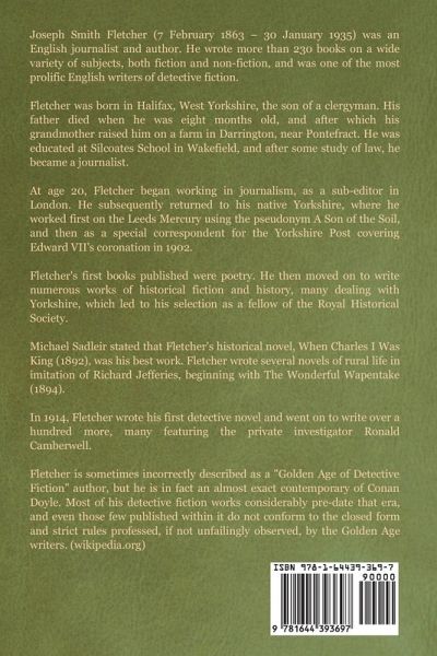 Joseph Smith Fletcher (7 February 1863 - 30 January 1935) was an English journalist and author. He wrote more than 230 books on a wide variety of subjects, both fiction and non-fiction, and was one of the most prolific English writers of detective fiction. Fletcher was born in Halifax, West Yorkshire, the son of a clergyman. His father died when he was eight months old, and after which his grandmother raised him on a farm in Darrington, near Pontefract. He was educated at Silcoates School in Wakefield, and after some study of law, he became a journalist. At age 20, Fletcher began working in journalism, as a sub-editor in London. He subsequently returned to his native Yorkshire, where he worked first on the Leeds Mercury using the pseudonym A Son of the Soil, and then as a special correspondent for the Yorkshire Post covering Edward VII's coronation in 1902. Fletcher's first books published were poetry. He then moved on to write numerous works of historical fiction and history, many dealing with Yorkshire, which led to his selection as a fellow of the Royal Historical Society. Michael Sadleir stated that Fletcher's historical novel, When Charles I Was King (1892), was his best work. Fletcher wrote several novels of rural life in imitation of Richard Jefferies, beginning with The Wonderful Wapentake (1894). In 1914, Fletcher wrote his first detective novel and went on to write over a hundred more, many featuring the private investigator Ronald Camberwell. Fletcher is sometimes incorrectly described as a "Golden Age of Detective Fiction" author, but he is in fact an almost exact contemporary of Conan Doyle. Most of his detective fiction works considerably pre-date that era, and even those few published within it do not conform to the closed form and strict rules professed, if not unfailingly observed, by the Golden Age writers. (wikipedia.org)