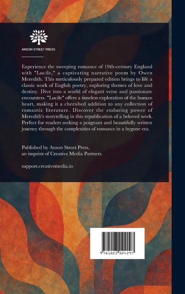 Experience the sweeping romance of 19th-century England with "Lucile," a captivating narrative poem by Owen Meredith. This meticulously prepared edition brings to life a classic work of English poetry, exploring themes of love and destiny. Dive into a world of elegant verse and passionate encounters. "Lucile" offers a timeless exploration of the human heart, making it a cherished addition to any collection of romantic literature. Discover the enduring power of Meredith's storytelling in this republication of a beloved work. Perfect for readers seeking a poignant and beautifully written journey through the complexities of romance in a bygone era. This work has been selected by scholars as being culturally important, and is part of the knowledge base of civilization as we know it. This work is in the public domain in the United States of America, and possibly other nations. Within the United States, you may freely copy and distribute this work, as no entity (individual or corporate) has a copyright on the body of the work. Scholars believe, and we concur, that this work is important enough to be preserved, reproduced, and made generally available to the public. We appreciate your support of the preservation process, and thank you for being an important part of keeping this knowledge alive and relevant.