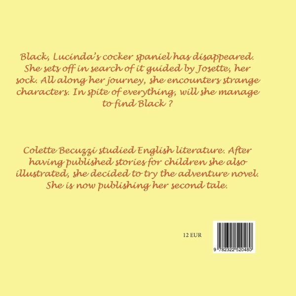 Black, Lucinda's cocker spaniel has disappeared. She sets off in search of it guided by Josette, her sock. All along her journey, she encounters strange characters. In spite of everything, will she manage to find Black?