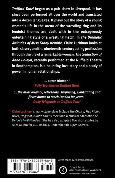 Includes the plays Trafford Tanzi, The Dramatic Attitudes of Miss Fanny Kemble and The Seduction of Anne Boleyn Trafford Tanzi began as a pub show in Liverpool. It has since been performed all over the world and translated into a dozen languages. It plays out the story of a young woman's life in the arena of the wrestling ring and its feminist themes are dealt with in the outrageously entertaining style of a wrestling match. In The Dramatic Attitudes of Miss Fanny Kemble, Claire Luckham looks at both slavery and the nineteenth-century acting profession through the life of a remarkable woman. The Seduction of Anne Boleyn, recently performed at the Nuffield Theatre in Southampton, is a haunting love story and a study of power in human relationships.