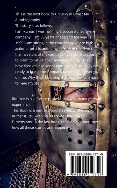 This is the next book to Unlucky in Love: My Autobiography. This series is based on the Alternate Universe Theory. Taking a different decision would affect the outcome, which causes life-changing events to unfold. The story of Kumar is as follows: I am Kumar, I was running a successful Software company. I am 35 years of age and the year is 1999. I am sitting in the courtroom, where high-action drama is unfolding in front of me. Two of my company's investors have gone to court to claim to return their invested money. They have filed an insolvency petition in court. They are ready to break the company down to get revenge on me. Why they are doing that, to know you have to read my story.