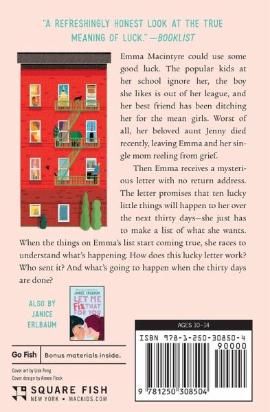 8th-grader Emma Macintyre is mourning the loss of mother's best friend, Aunt Jenny, and struggling to keep her own best friend from drifting apart when she receives a mysterious letter telling her to write a list of 10 lucky things she wants to happen.