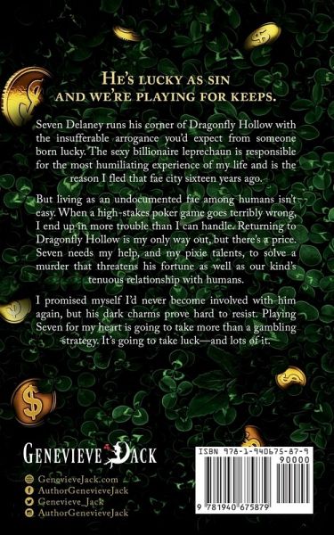 He's lucky as sin, and we're playing for keeps. For sixteen years, I've lived unlawfully among humans, supporting myself by playing poker. But concealing my fae identity isn't easy. When a high stakes game goes terribly wrong, only one person stands between me and lifelong servitude-Seven. Seven Delaney runs his corner of Dragonfly Hollow with the insufferable arrogance you'd expect from someone born lucky. Not only did the sexy fae billionaire break my heart, he's responsible for the most humiliating experience of my life and is the reason I fled that fairy realm. Returning to Dragonfly Hollow is my only way out, but there's a price. Seven requires my help, and my pixie talents, to solve a case that threatens fae society's tentative relationship with humans. I promised myself I'd never get involved with him again, but his dark charms prove hard to resist. The closer we get to solving this mystery, the harder it becomes to keep my distance. And the clearer it is that if we don't learn to trust each other again, our luck might just run out.