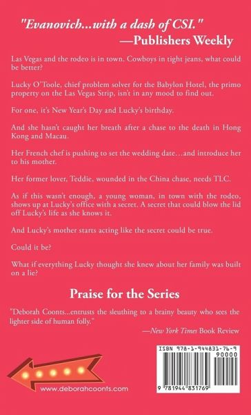 "Evanovich…with a dash of CSI." – Publishers Weekly (review of Lucky Stiff) Who would want to kill a clown? Lucky O’Toole, Chief Problem Solver for the Babylon Hotel, the primo property on the Las Vegas Strip, isn’t in any mood to find out. For one, it’s New Year’s Day and Lucky’s birthday. And she hasn’t caught her breath after a chase to the death in Hong Kong and Macau. Her French chef is pushing to set the wedding date. Her former lover, wounded in the China chase, needs TLC. A young woman, in town with the rodeo, shows up at her office with a secret that could blow the lid off Lucky’s life as she knows it. And Lucky’s mother starts acting like the secret could be true. Could it? What if everything Lucky thought she knew about her family was built on a lie? And why would someone kill a clown? A light, funny, romantic mystery providing a Vegas escape appropriate for anyone looking for a good laugh. Get your copy today! AN INTERVIEW WITH DEBORAH COONTS Why did you decide to write humor? I’m not sure I decided to add snark to the Lucky, books, specifically to Lucky’s own voice, it just happened that way. When I was a kid, my mouth always got me into trouble. Finally, I’ve found a way to harness the sarcasm for the Forces of Good—or at least in a way not to anger my grandmother. And when Lucky started talking to me, she had a strong dose of sass in her. The Lucky O'Toole Vegas Adventure series is hard to categorize. Is that by design? When I set out to write Wanna Get Lucky?, I knew I wanted to write a romp through Las Vegas. I had the characters and the setting but no real understanding of narrative drive. So, I threw a young woman out of a tour helicopter into the middle of the Pirate Show and let the story unfold. A bit of murder to keep the plot moving, some wisecracking and Vegas mischief to make you laugh, and some romance to keep it interesting. A bit of a mash up, but it works. PRAISE FOR THE LUCKY O’TOOLE VEGAS ADVENTURE SERIES "Lucky’s story is funny, fast-paced, exuberant and brilliantly realized." - Susan Wiggs, #1 New York Times bestselling author "Get ready to win big--with a novel that will keep you glued to the pages all the way to the end." - Brenda Novak, New York Times & USA Today bestselling author "More fun than a winning streak in Vegas. Lucky O’Toole is a character with brains, beauty, and a wry sense of humor. Readers will want to meet her again—and soon." - Diane Mott Davidson, New York Times bestselling author "Deborah Coonts...entrusts the sleuthing to a brainy beauty who sees the lighter side of human folly." - New York Times Book Review "Las Vegas is the perfect setting for this witty tale of misdirection and larger-than-life characters. Fans of J. A. Konrath's Jack Daniels series will love this." - Library Journal, starred review
