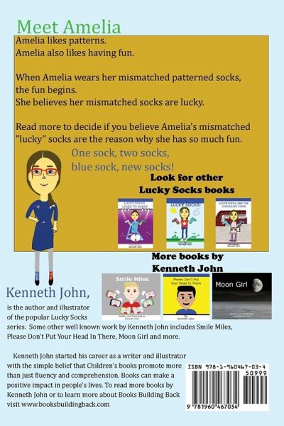 A little girl, who likes patterns, believes her mismatched "lucky" socks are the reason why fun activities occur at the end of each week. Fun things always seem to happen when Amelia wears her lucky socks and Amelia loves having fun. Mom and Dad always make Amelia wear her matching socks first but as the week goes on and the matching socks become less, Amelia gets to wear her mismatched "lucky" socks. Read more to decide if you believe Amelia's mismatched "lucky" socks are the reason why she has so much fun in this unexpected event filled holiday story.